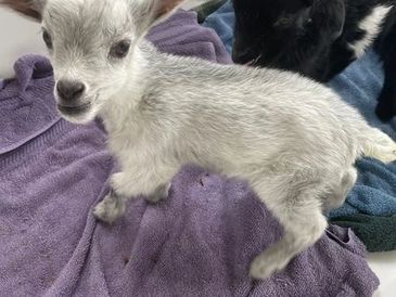 BlueBell is a spunky little BLUE doeling with moonspot genetics. She was bottle raised. She has personality plus!
