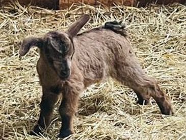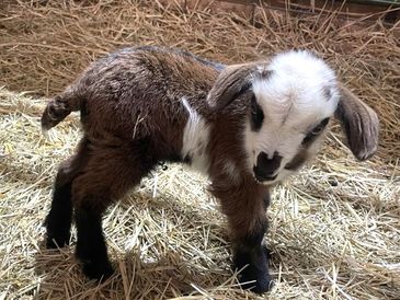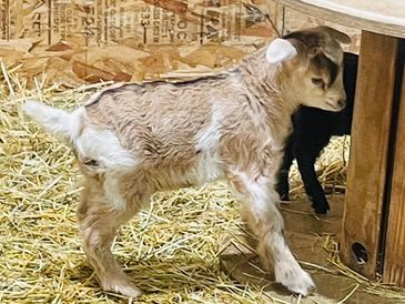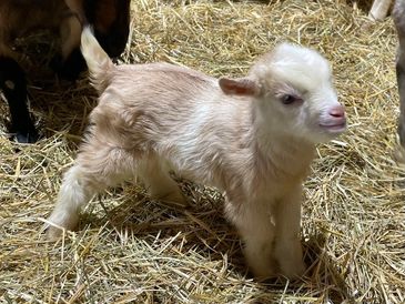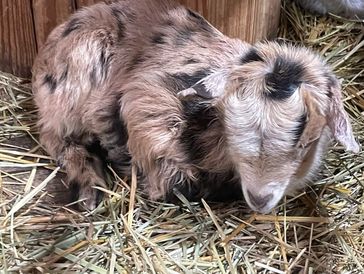 Moon Flower is a moon spot doeling. The picture doesn't do her brown moonspots justice. They will grow and change along with her.